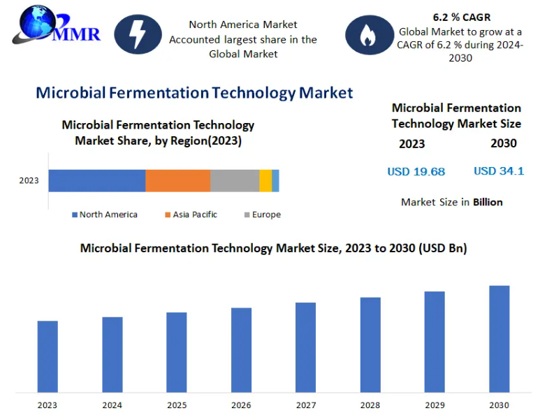 The global microbial fermentation technology market was valued at USD 19.68 billion in 2023 and is expected to reach approximately USD 34.1 billion by 2030, growing at a compound annual growth rate (CAGR) of around 6.2% during the forecast period. This growth reflects increasing demand for biologics, sustainable production solutions, and advanced bioprocessing capabilities.