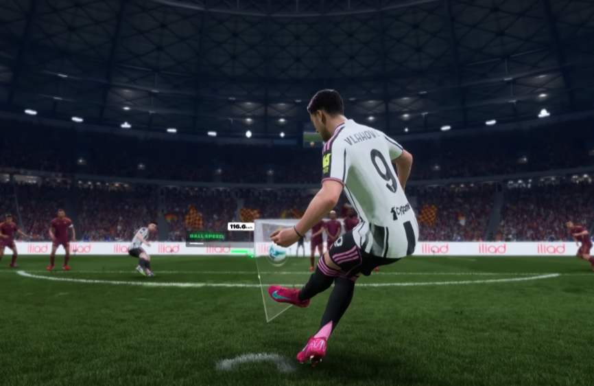 Aim: Use the left stick to adjust the shot's direction. Even minor adjustments can determine whether the ball hits the back of the net or goes wide.