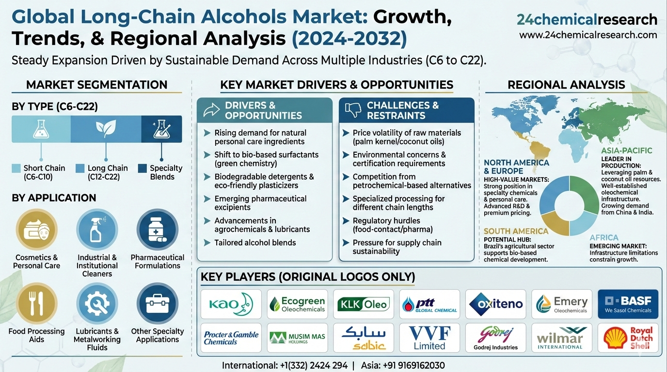 This comprehensive report provides in-depth analysis of the global Long-Chain Alcohols market from 2024 through 2032, offering valuable insights for stakeholders across the value chain. The research covers: