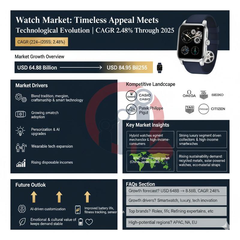 The global Watch Market continues to demonstrate remarkable resilience and adaptability, poised for steady growth through 2035. According to Market Research Future’s analysis, the market was valued at USD 63.31 billion in 2023 and is forecast to reach USD 85.0 billion by 2035, reflecting a compound annual growth rate (CAGR) of 2.48%. This sustained expansion is driven by evolving consumer demands, technological advancements, and shifting lifestyle preferences.