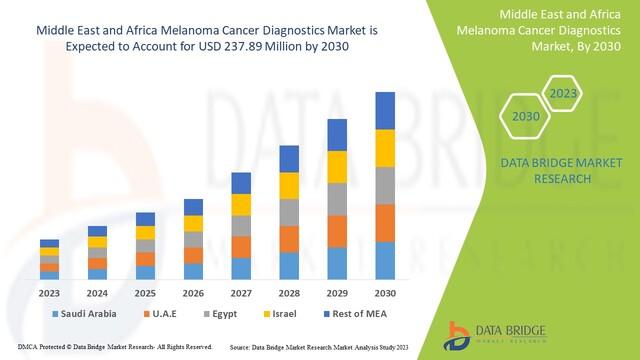 Middle East and Africa melanoma cancer diagnostics market is expected to gain market growth in the forecast period of 2023 to 2030. Data Bridge Market Research analyses that the market is growing with a CAGR of 5.8% in the forecast period of 2023 to 2030 and is expected to reach USD 237.89 million by 2030.