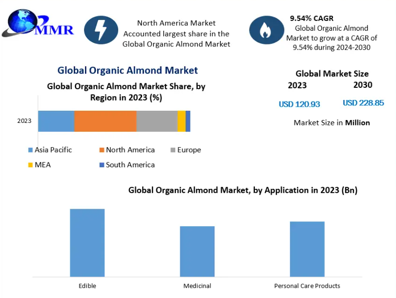 The global Organic Almond Market continues to experience strong momentum as consumers increasingly prioritize natural, chemical-free, and nutrient-rich food products. In recent years, the market has expanded significantly due to rising awareness regarding the health benefits of almonds, which are rich in protein, fibre, healthy fats, vitamins, and antioxidants. Organic almonds, grown without synthetic fertilizers or pesticides, have gained widespread acceptance in both developed and developing markets. The industry has shown notable growth driven by the clean-label movement, expanding plant-based diets, and the rising popularity of organic snacks and functional foods. The market is projected to maintain healthy growth through 2030, supported by evolving dietary trends, expanding retail availability, and innovations in almond-based products.