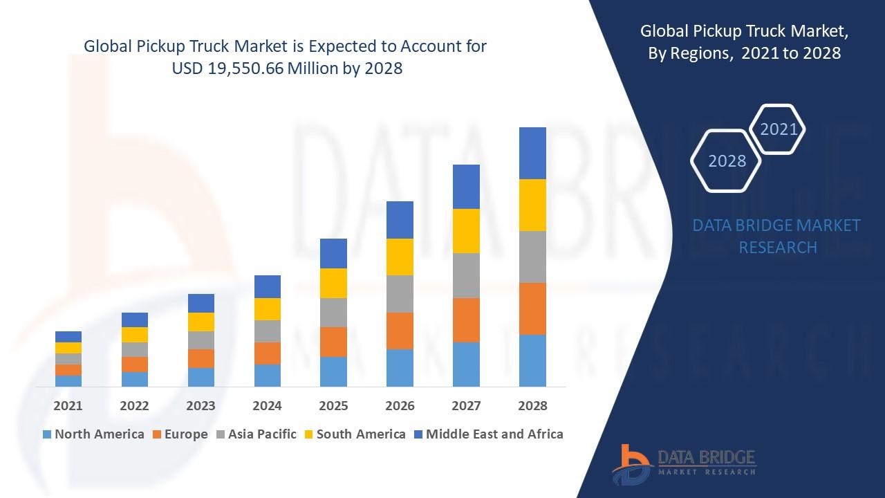 Pickup truck market size is valued at USD 19,550.66 million by 2028 is expected to grow at a compound annual growth rate of 2.10% over the forecast period of 2021 to 2028.