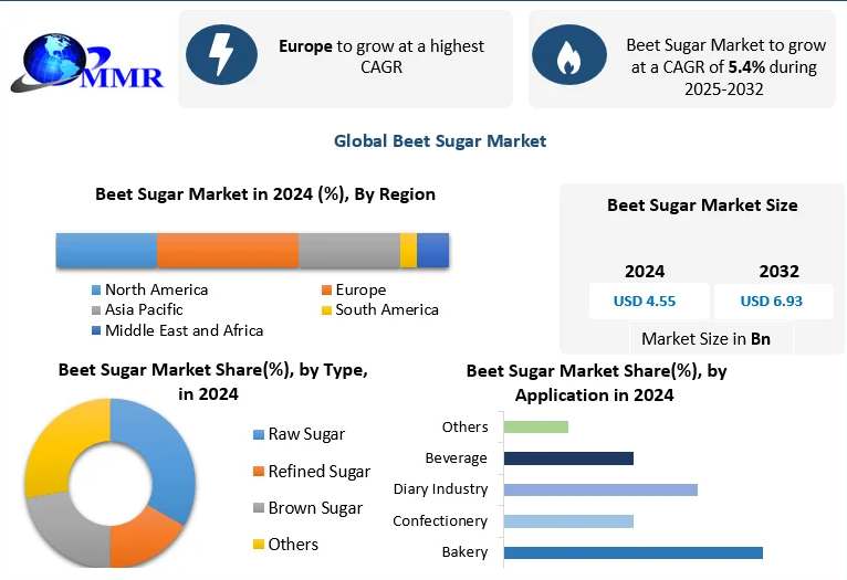The global Beet Sugar Market continues to expand steadily, supported by rising demand for natural sweeteners across the food and beverage sector. Beet sugar, derived from sugar beet crops, is chemically identical to cane sugar and is widely used in confectionery, bakery, dairy, beverages, and packaged foods. The market was valued at over USD 4.5 billion in 2024 and is projected to grow at a CAGR of around 5.4% from 2025 to 2032, reaching close to USD 7 billion by 2032. Growth is strongly influenced by clean-label preferences, the rising popularity of plant-based ingredients, and increased industrial applications. Furthermore, advancements in beet cultivation and processing technologies continue to enhance yield and efficiency, supporting long-term market expansion.