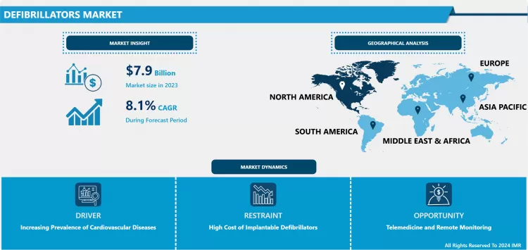 The Global Defibrillators Market Size Was Valued at USD 7.9 Billion in 2024 and is Projected to Reach USD 14.7 Billion by 2032, Growing at a CAGR of 8.1% From 2024-2032.