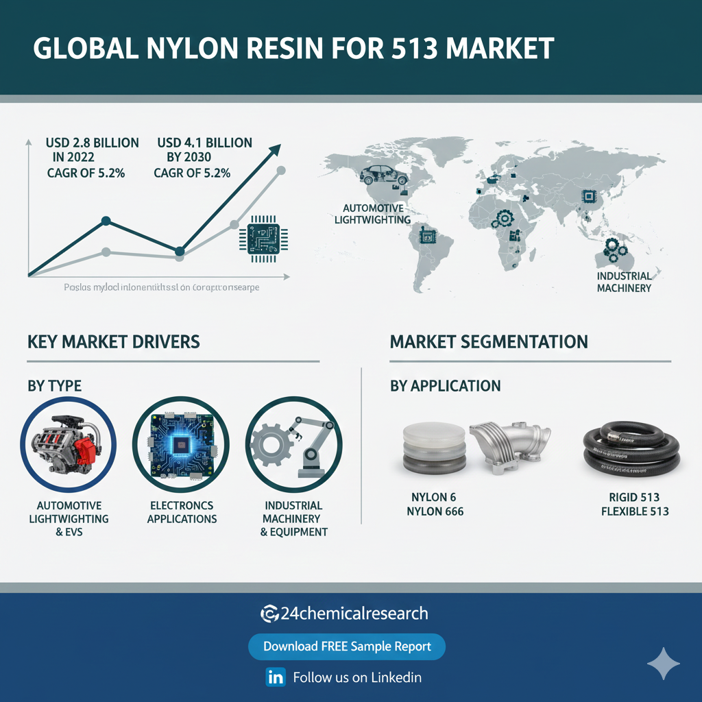 Global Nylon Resin for 513 market was valued at USD 2.8 billion in 2022 and is projected to reach USD 4.1 billion by 2030, exhibiting a steady CAGR of 5.2% during the forecast period.