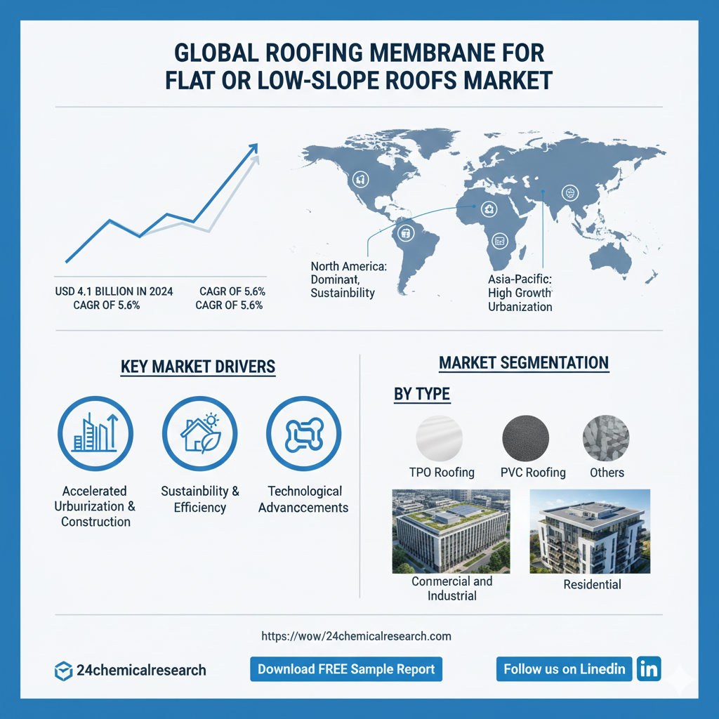 Global Roofing Membrane for Flat or Low-Slope Roofs market was valued at USD 4.1 billion in 2024 and is projected to reach USD 6.8 billion by 2032, exhibiting a steady CAGR of 5.6% during the forecast period.
